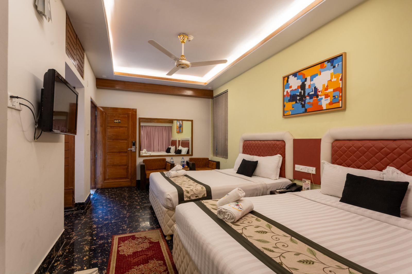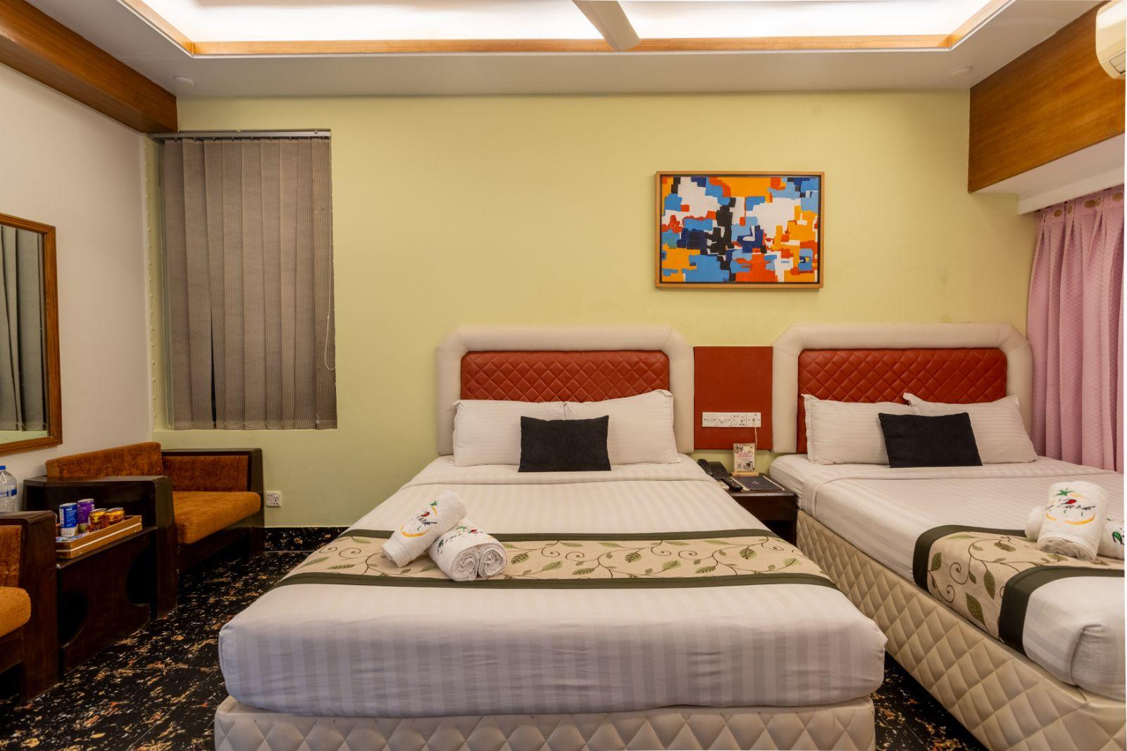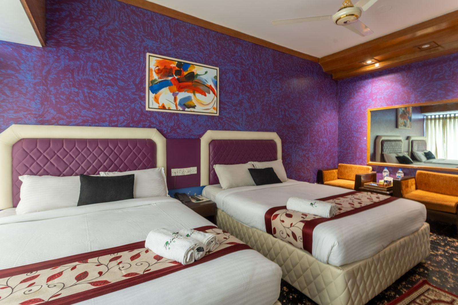 Superior Premium Rooms sleep 4 people in two double beds. With attached washroom, separate storage & seating area, this room is perfect for groups of friends or a family of four. The room is adorned with modern facilities like LED TV, high speed WiFi and 24/7 room service. The attached washroom comes with a set of imported toiletries and amenities.