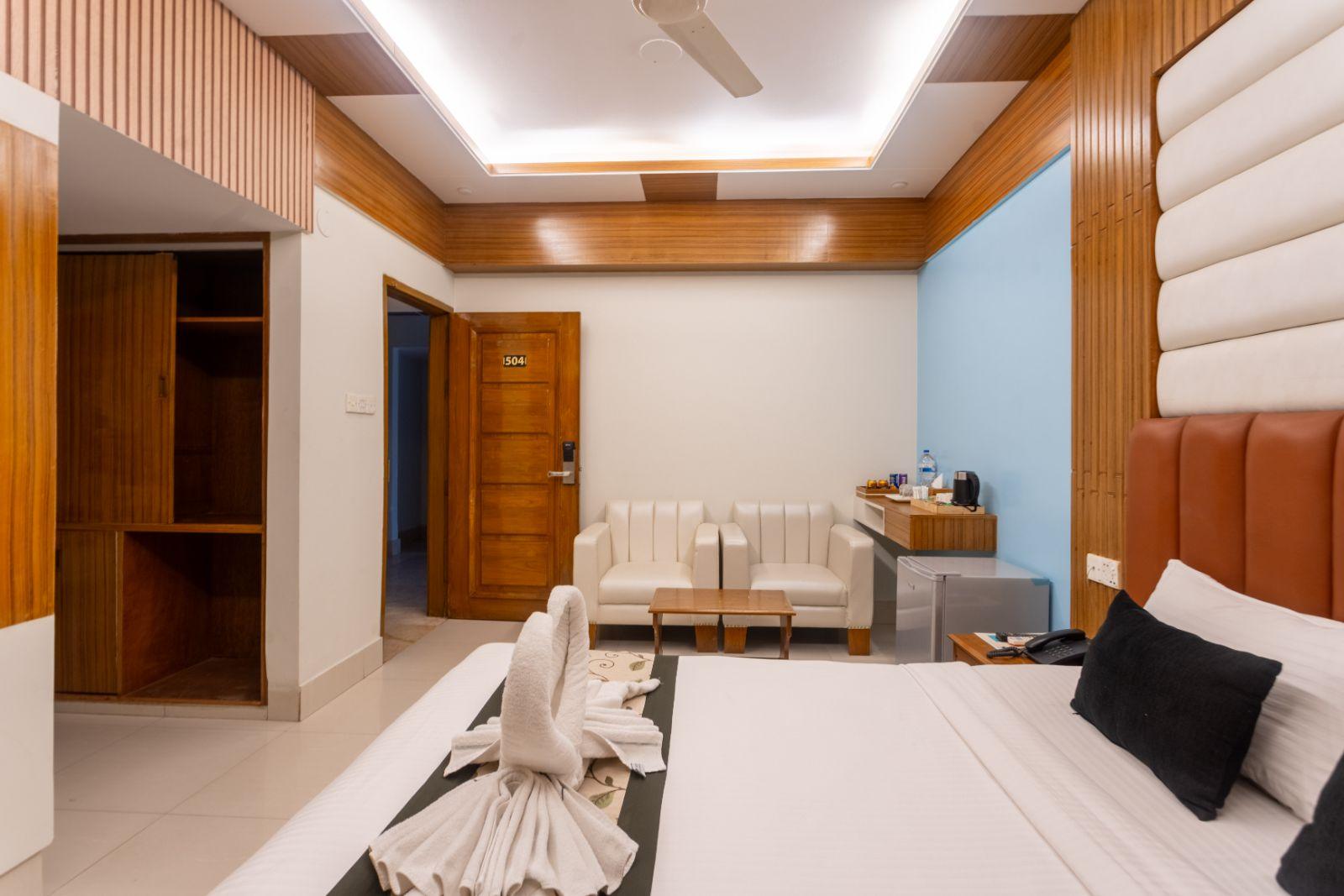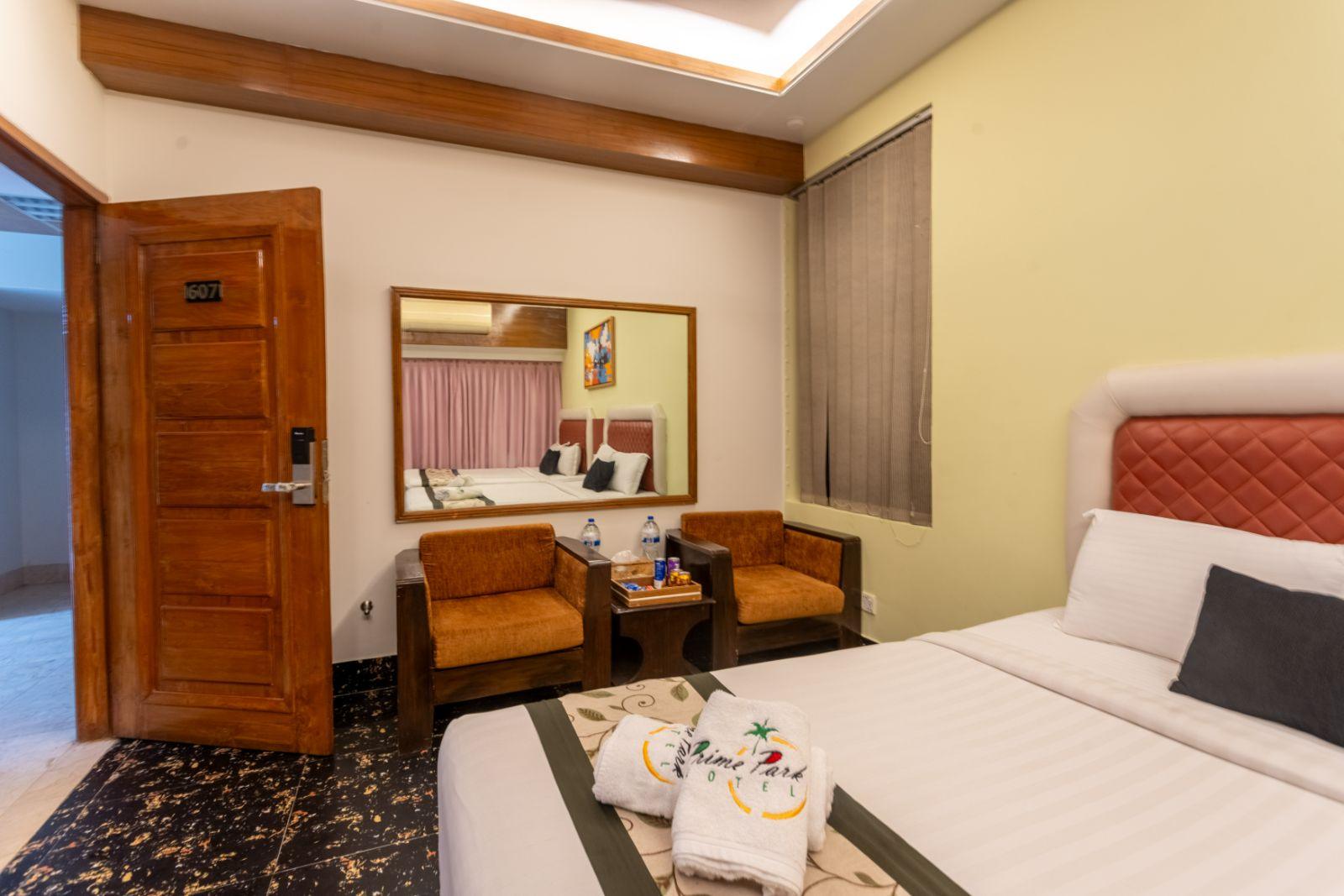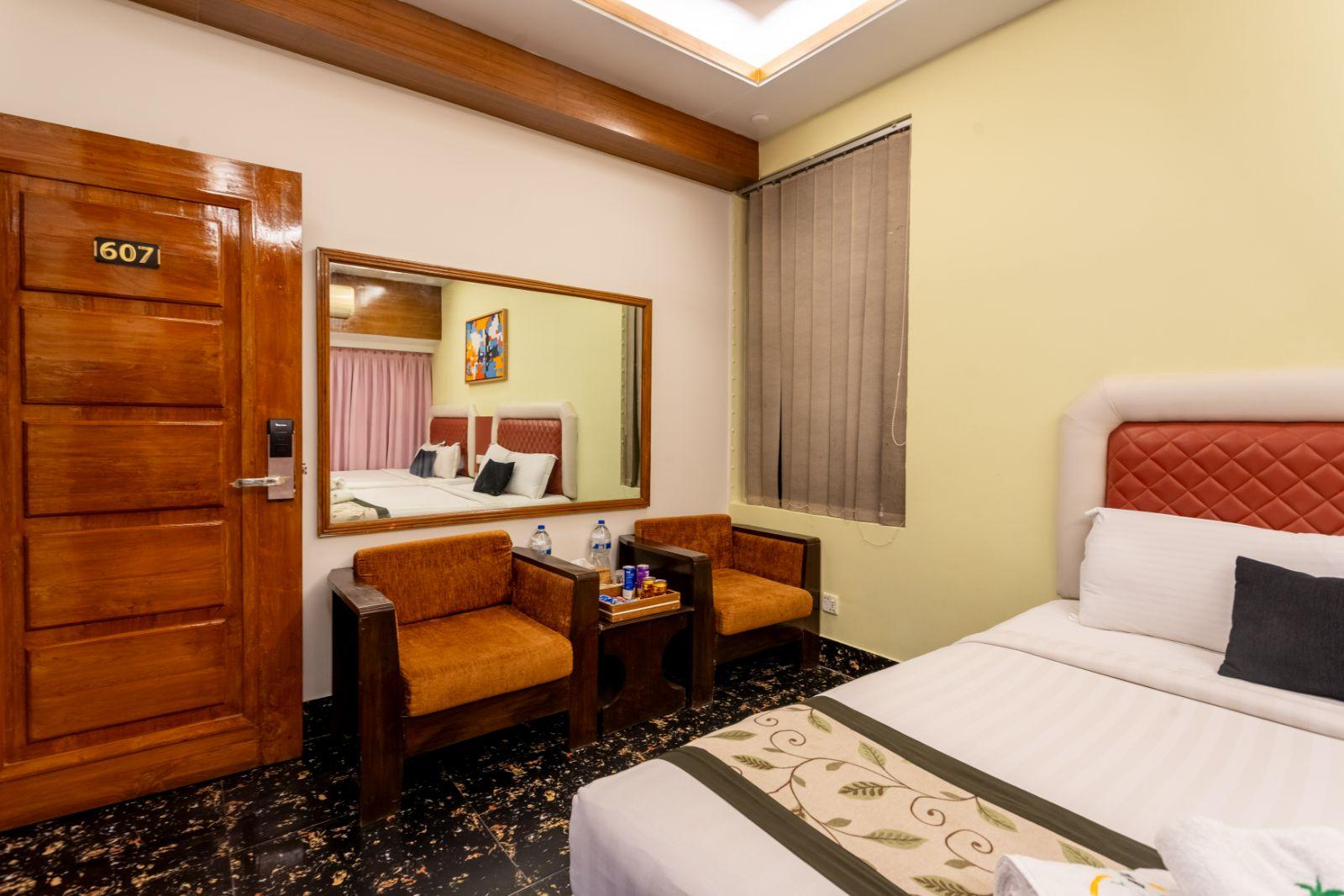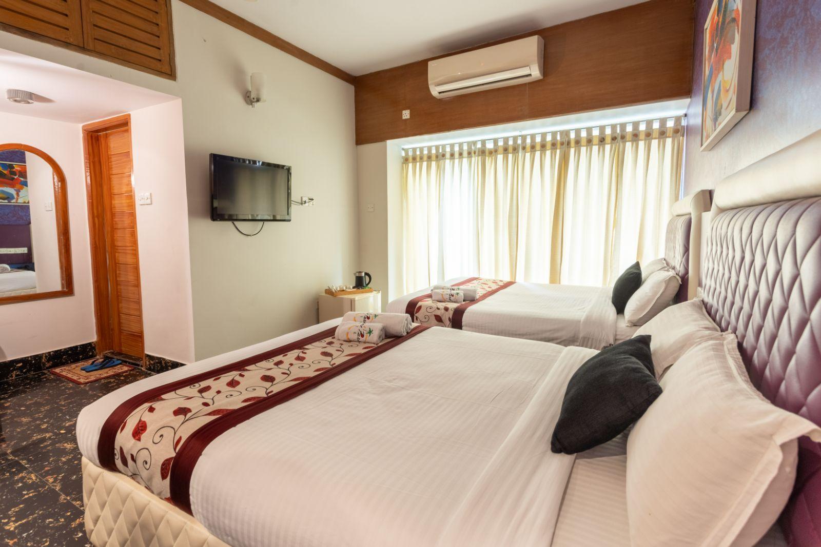 Superior Premium Rooms sleep 4 people in two double beds. With attached washroom, separate storage & seating area, this room is perfect for groups of friends or a family of four. The room is adorned with modern facilities like LED TV, high speed WiFi and 24/7 room service. The attached washroom comes with a set of imported toiletries and amenities.
